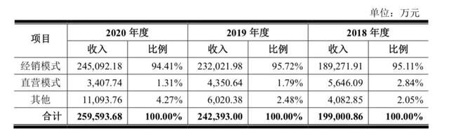 根据招股书披露,2020年其加盟门店创造的营收为24.5亿元,占比高达94.4%,而直营门店营收仅占1.3%。在2018年和2019年,加盟门店营收占比均超95%。