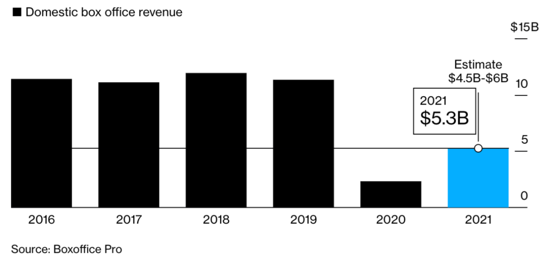 根据Boxoffice Pro的预测, 2021年全美影业票务收入预计将在45亿美元到60亿美元间,是去年表现的三倍,但是不仅与2019年相差甚远,而且将通货膨胀等经济因素纳入考虑后,60亿美元一年的表现比1982年还差劲, 如果你没概念的话,1982年是 “E.T.”上线影院的那一年。