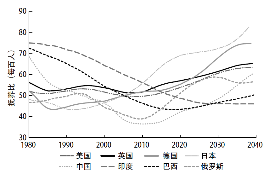 《人口大逆转》认为,全球抚养比正处于拐点, 且有预测认为, 几乎每一个发达国家及主要新兴市场国家的抚养比增速都会上升,尤其是中国和德国。