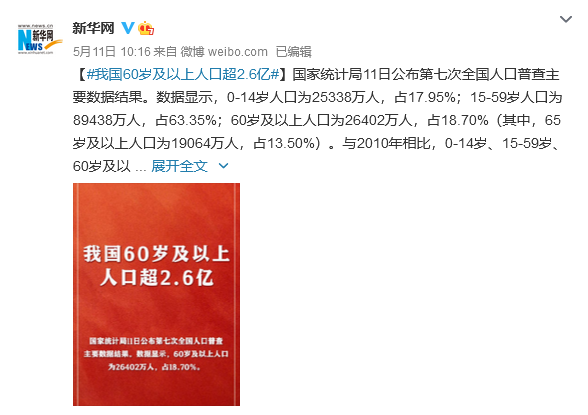 5月11日公布的第七次全国人口普查数据又显示,我国人口总数虽然仍在增加,但是增速放缓,人口老龄化加深。