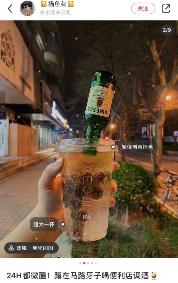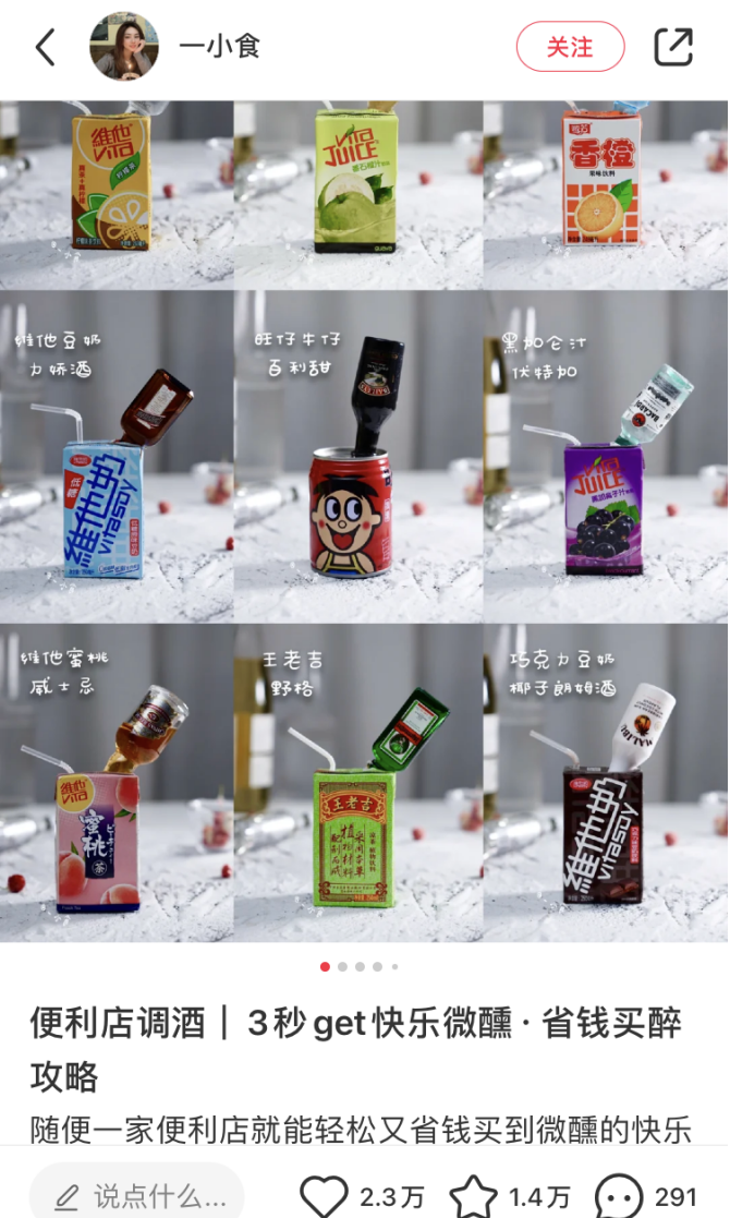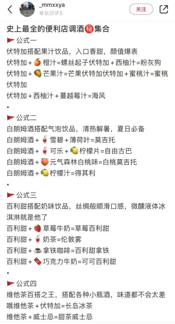 越来越多的年轻人开始跟随小红书,模仿起“便利店调酒”,并且解锁各式各样的调酒单: