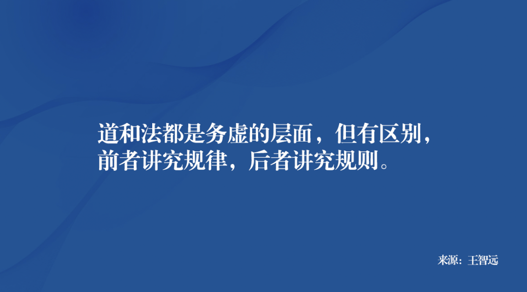道和法都是务虚的层面,但有区别,前者讲究规律,后者讲究规则;规律是研究事物存在的本源层,规则是需要时所设定出来的。
