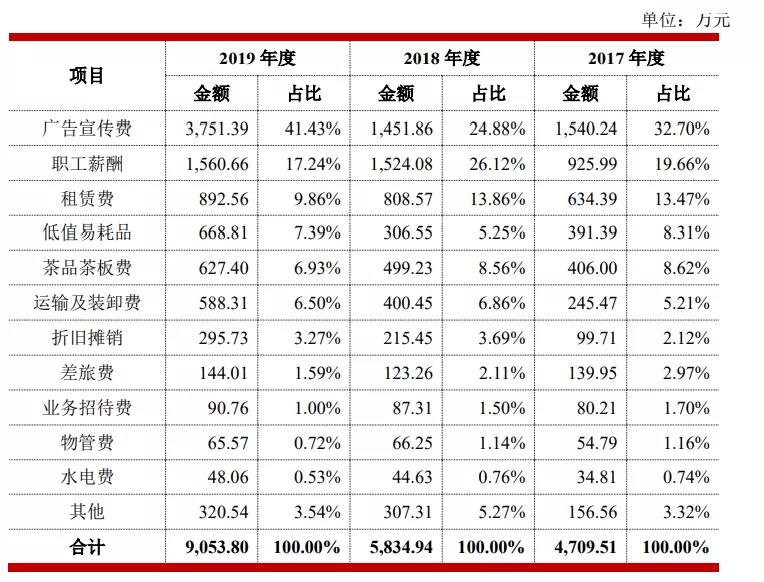 与此同时,较为有趣的是八马茶业的销售费用结构区别于同行,2019年其薪酬支出与租金水电支出占销售费用比例为43.94%与18.45%,而澜沧古茶为17.24%与0.53%,中国茶业则为8.35%。