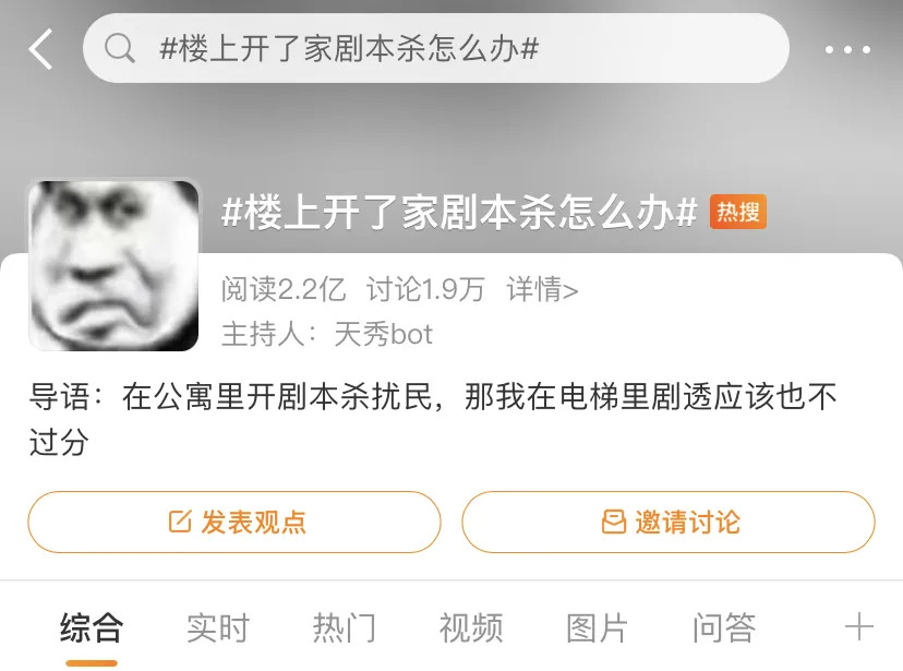 同时,据上海市公安局调查统计,上海剧本杀经营处所大部分在商住两用房内,少部分在别墅、公寓以及综合性商场内。而结合一度登上微博热搜榜的话题#楼上开了家剧本杀怎么办#,这种经营乱象显然不是上海一家独有。