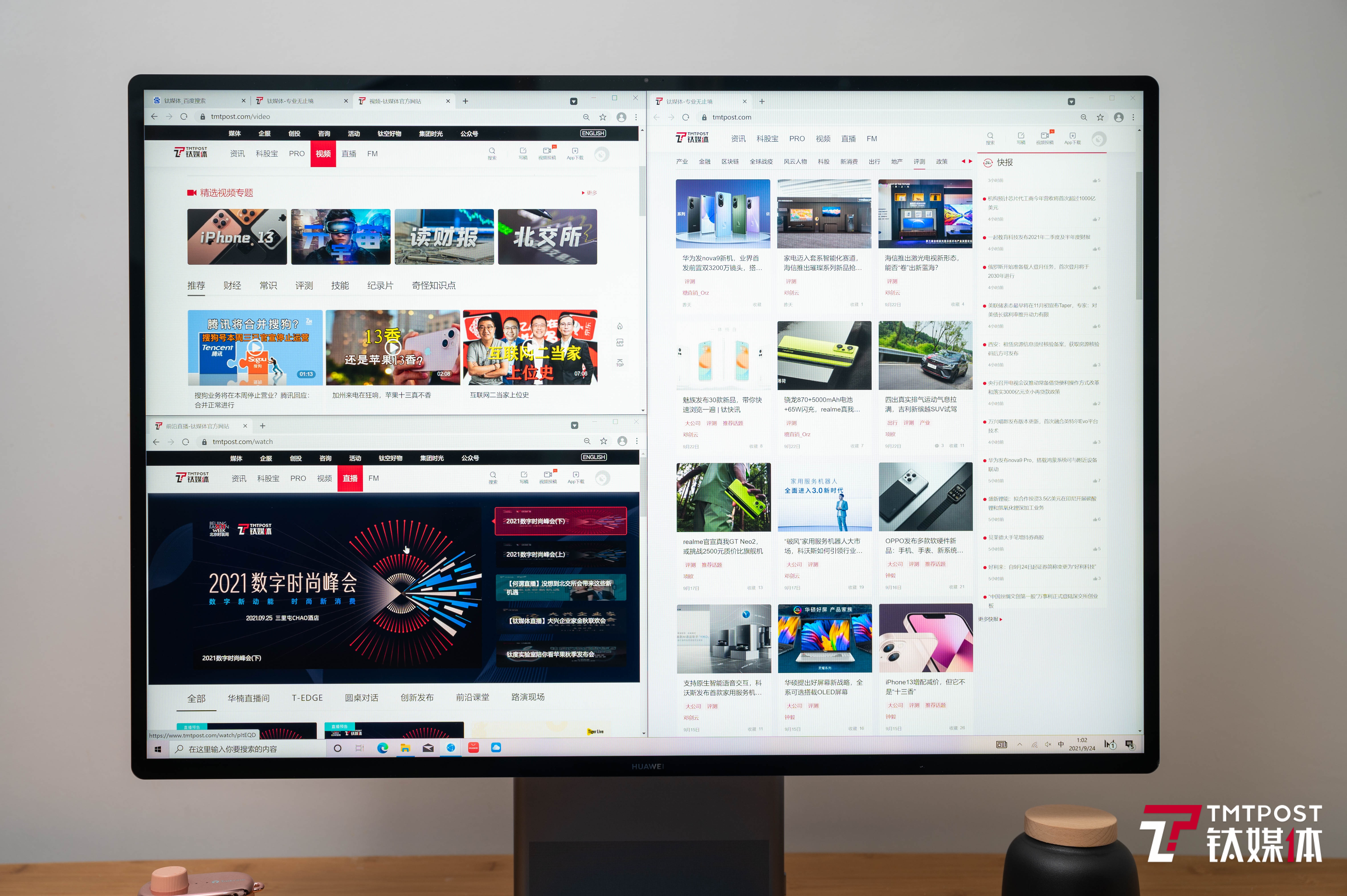 屏幕方面,这块28.2英寸的屏幕主要具备3个显示特性:高分辨率、高亮度以及广色域,屏幕的整体分辨率达到了3840×2560,达到了4K+级别,这就使得在画面同时打开四个页面的情况下,依然可以获得锐利的显示图像。