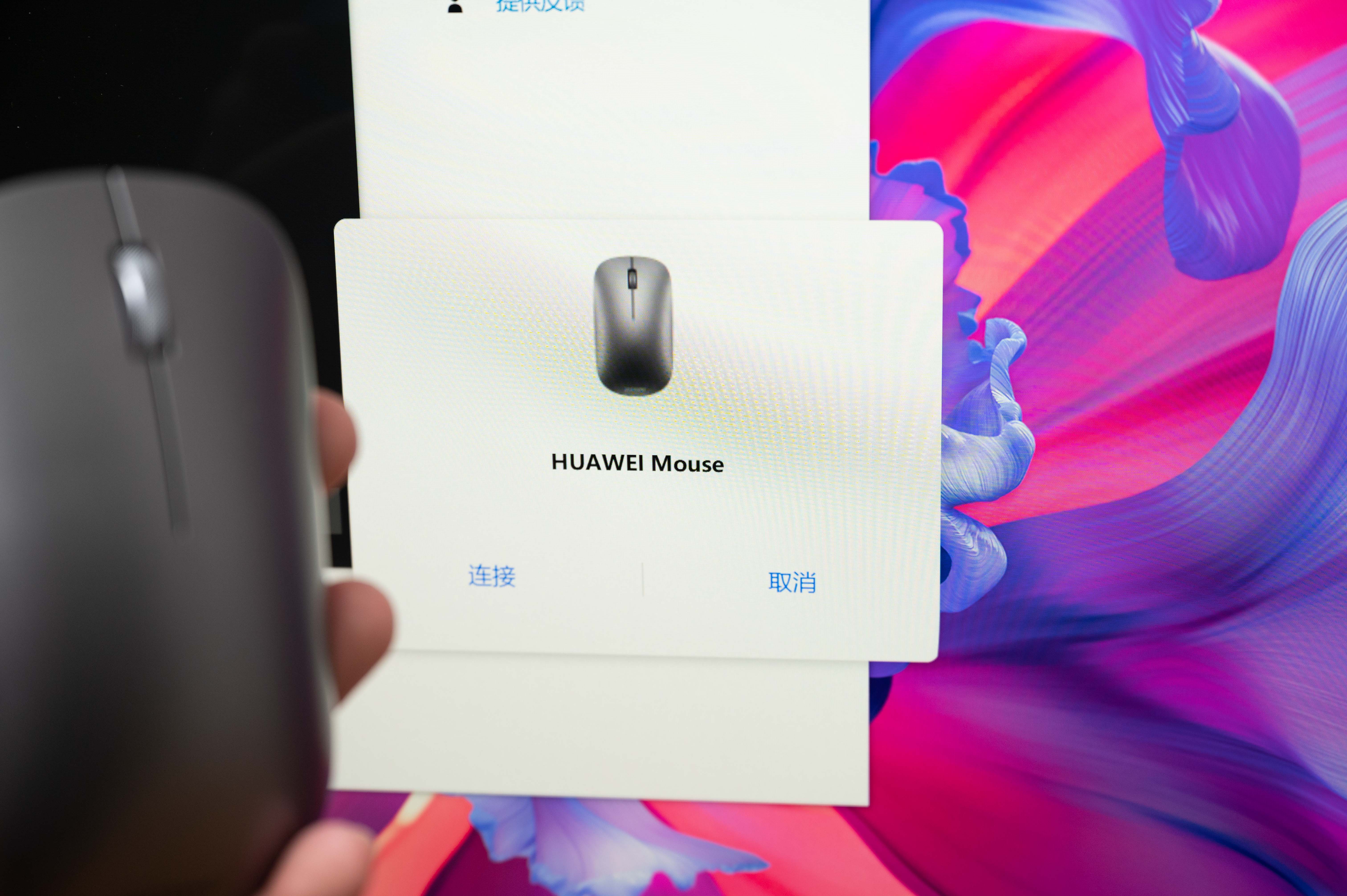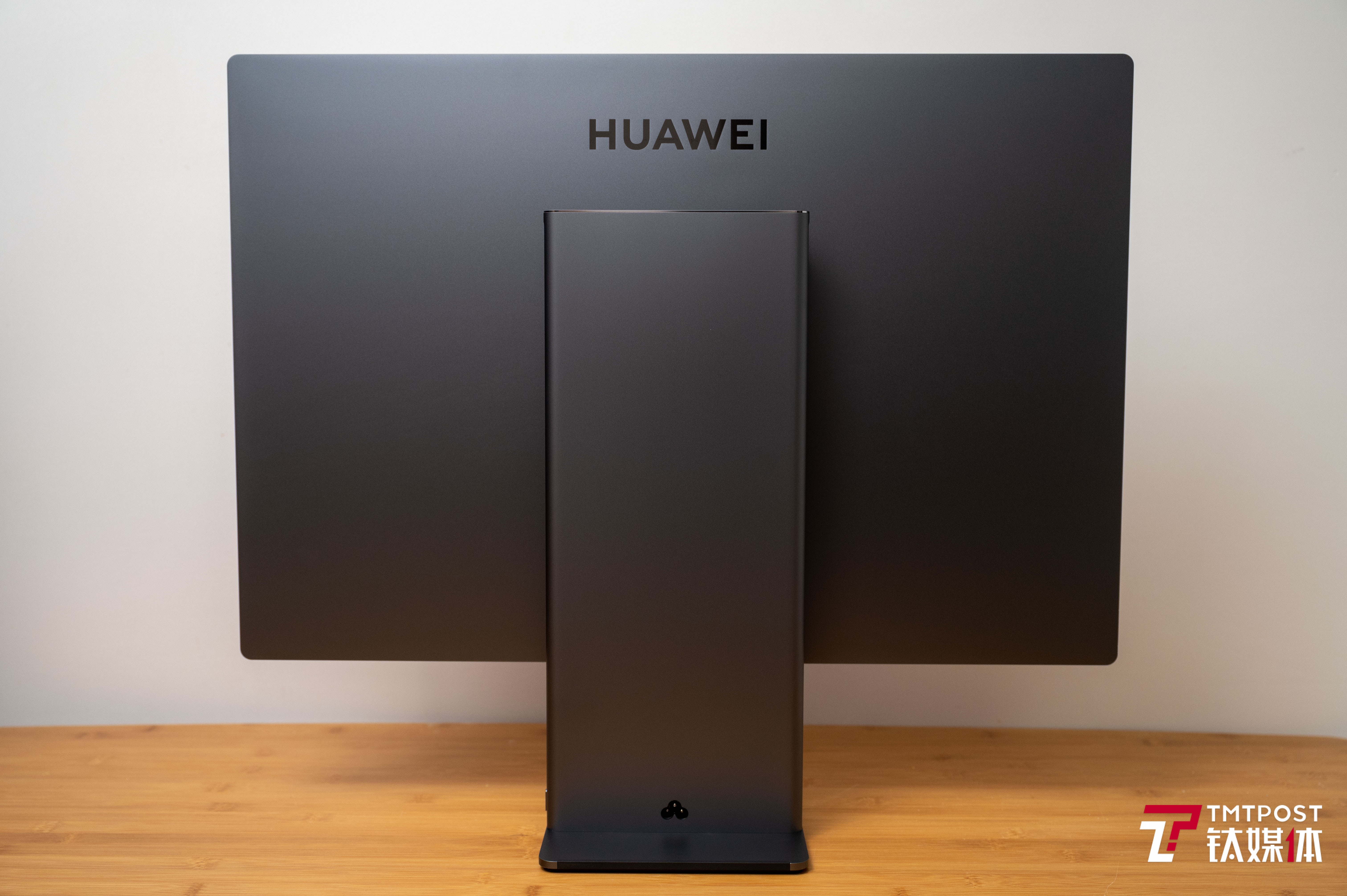 在机身的背面,也同样沿用了简洁风格的设计,无论是显示屏后部还是底座后部均为一体化的金属背板,顶部HUAWEI的字样也比较醒目,此次笔者拿到的这款是深空灰配色,整体色调比较偏中性。