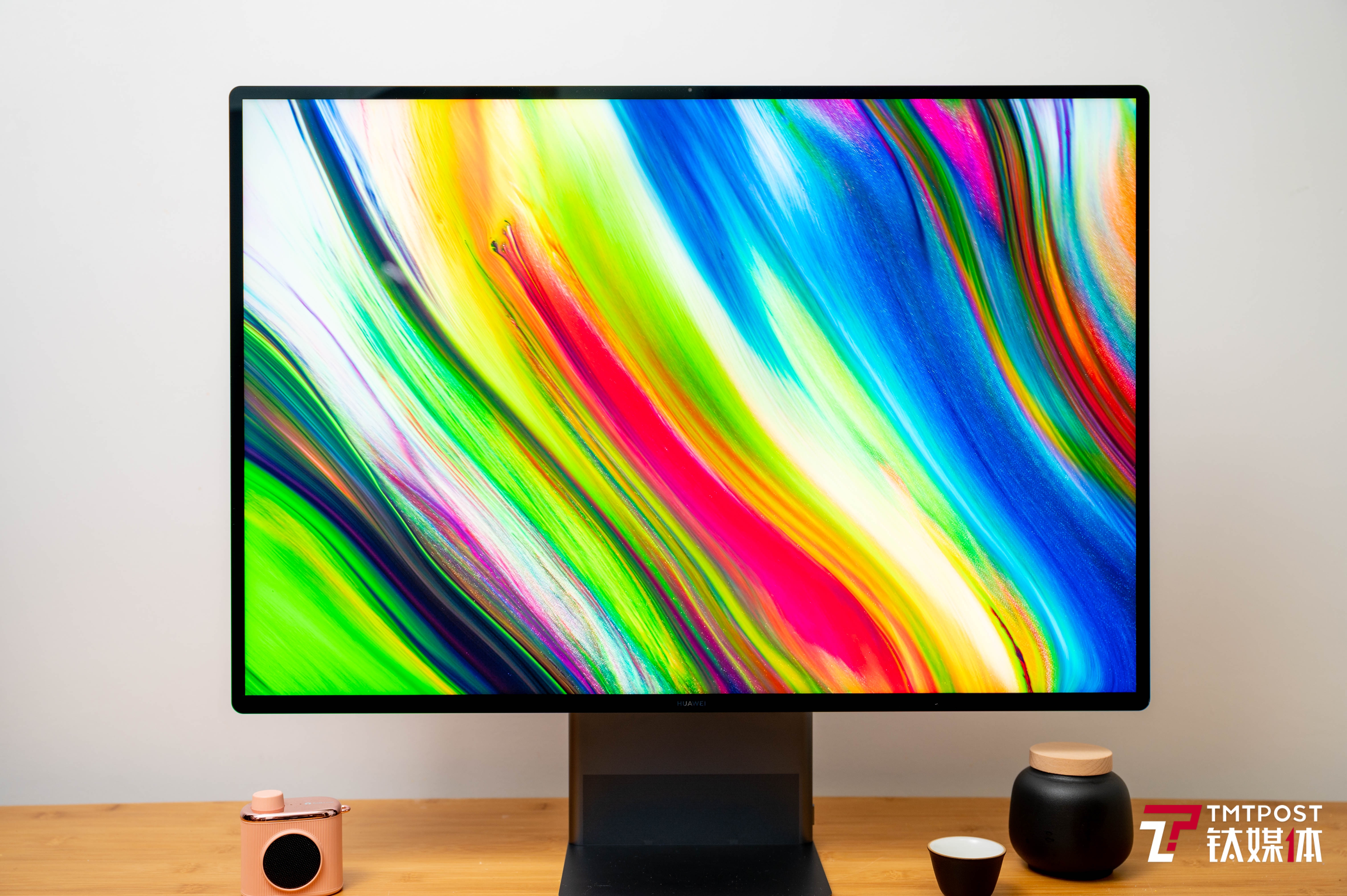 如果你之前看到过华为MateView那台显示器,那么在你看到华为MateStation X时,你就会下意识的认为这是一台显示器产品。在机身的正面,是28.2英寸3:2显示比例的屏幕,四周也做了等宽的边框设计,整体看起来就与一般的显示器没有什么差异。