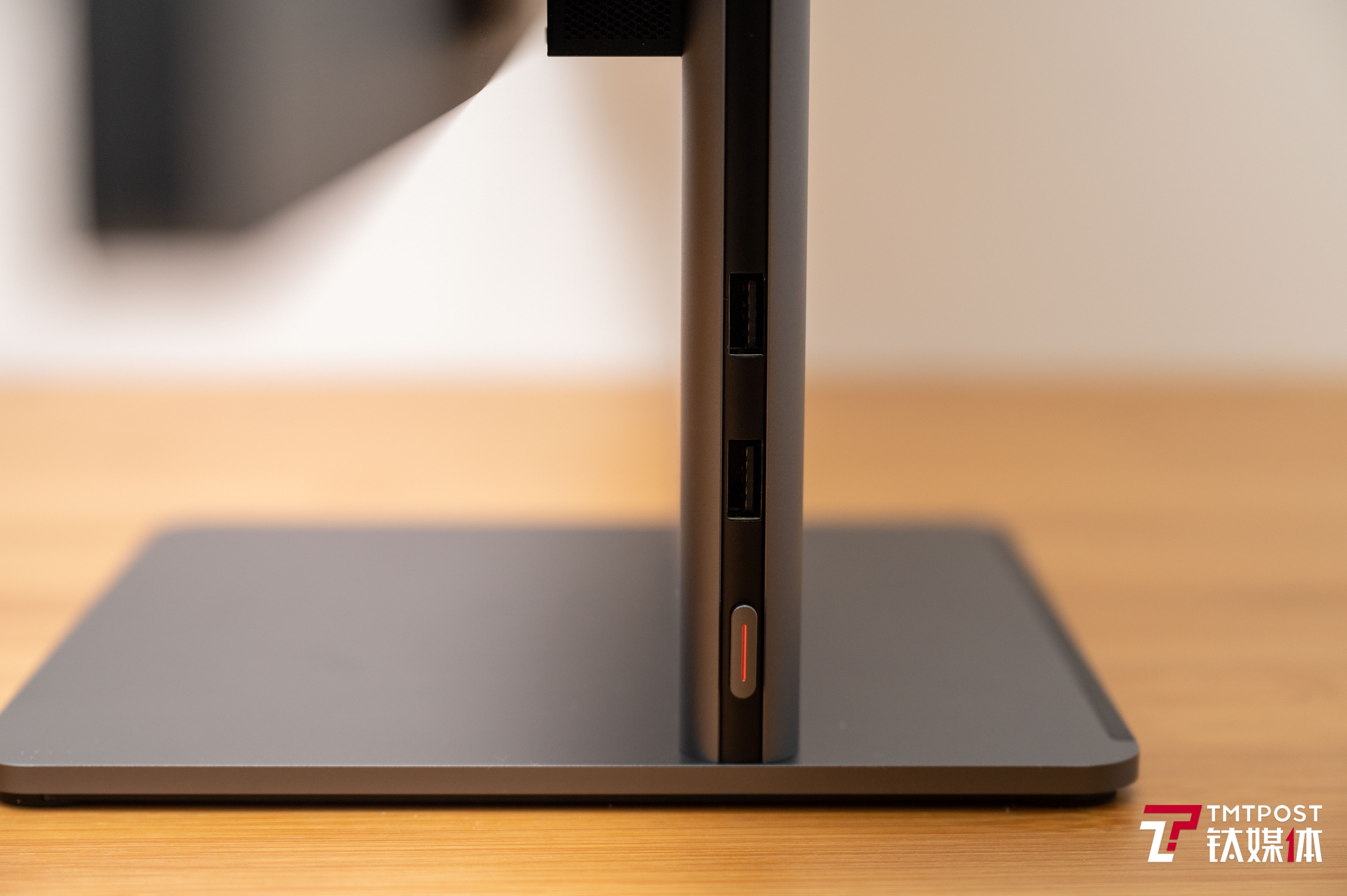 机器的接口同样采用了隐藏的设计,位于底座的两侧,华为MateStation X在主机右侧配备2个Type A USB 3.2 Gen 1 接口,左侧则具备2个Type C USB 3.2 Gen 1接口,支持5V/2A对外供电、DP 视频信号输入/输出,此外还有1个3.5mm音频接口。