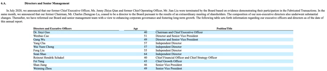 瑞幸董事及核心高管名单,图源:瑞幸2020年年报