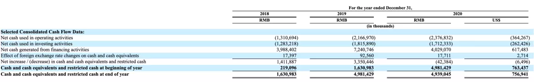 瑞幸的经营现金流依然为负,图源:瑞幸2020年年报