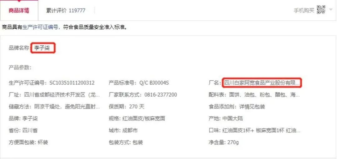 例如,李子柒品牌的产品中,酸辣粉的代工方就是行业大佬四川白家,火锅底料的代工方是四川漫味龙厨生物科技有限公司,隶属于四川小龙坎。但李子柒酸辣粉在天猫旗舰店的售价是3桶39.9元,而白家则只卖35.8元。