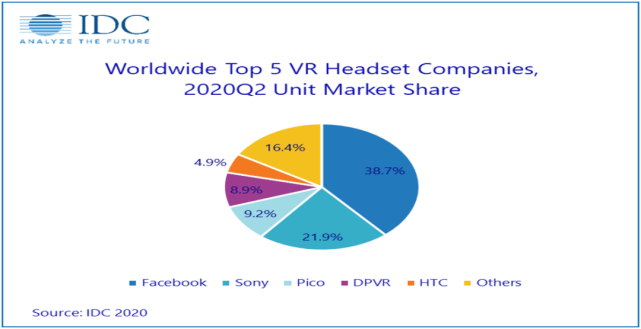 市场格局正在悄然发生变化,一超(Facebook)多强(Sony,Pico,HTC等), 正在演变为一家独霸,Facebook Oculus带头大哥的位置愈加巩固。2020年2季度,Facebook市场份额尚不足40%,而2021年随着Oculus Quest 2的推出,Facebook已占据了70%以上的出货量。
