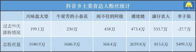 在李子柒停更的近两个月里,这批“乡土美食家”辛勤日更、同时飞速涨粉。“在李子柒这位顶流身后,有相当数量的达人对她虎视眈眈。”抖音MCN机构运营负责人周凯称,乡土美食类视频原本就涨粉快,在李子柒停更的这段时间,流量不可避免地被分走了。