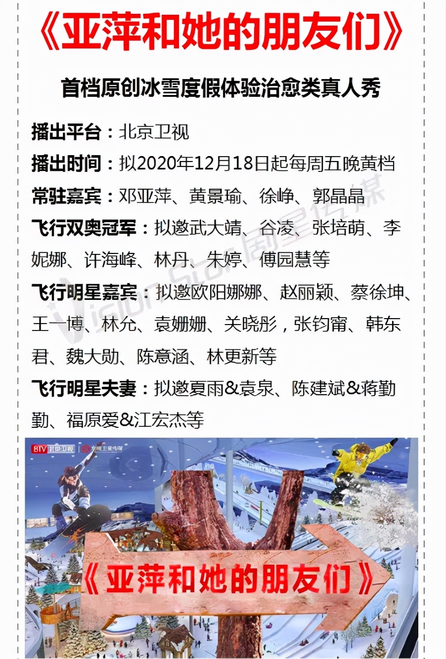 在体育明星阵容上,或同样迎来一个爆发期。仅《亚萍和她的朋友们》中常驻嘉宾便有邓亚萍、郭晶晶,飞行拟邀嘉宾更是包括了武大靖、海峰、林丹、朱婷、傅园慧等多位奥运冠军,这场冠军的聚会或许会给人耳目一新之感。至于是否会有今年新鲜出炉的冠军入局,恐怕也是市场关注的焦点。