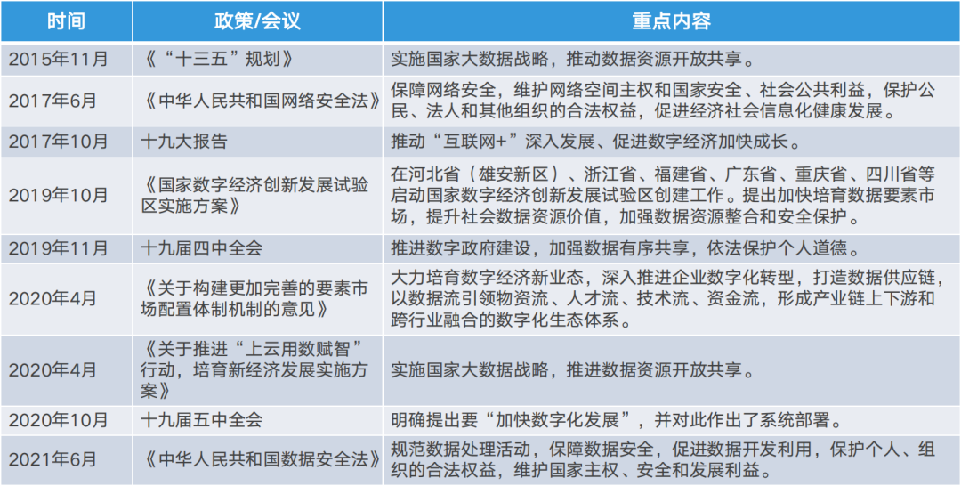 2015-2021年间国家出台的数字经济相关政策(图表来源:新声创服)