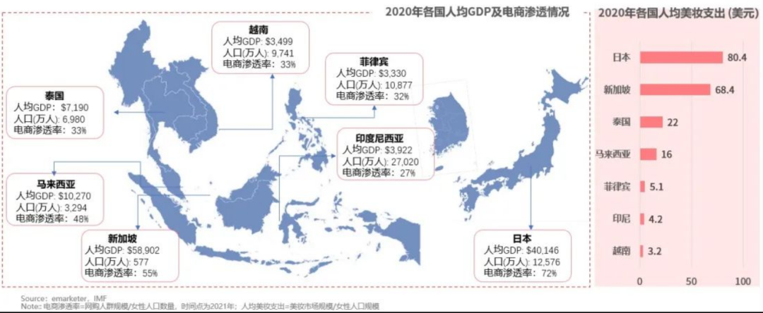 因此,海外的广阔市场成了国货美妆们的“狩猎之地”。与国内相比,以东南亚为代表的美妆市场获客成本较低。与此同时,依托于亚马逊、Shopee、Lazada以及速卖通等跨境电商平台,成熟的电商为品牌出海提供了便利。