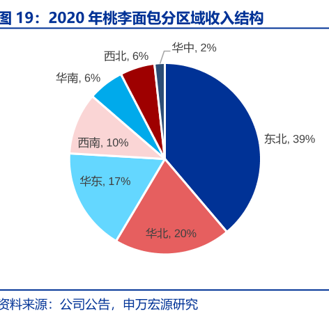 一是桃李过度依赖北方市场。虽然桃李面包早就开始南下,但是南方市场却没有像北方市场一样高歌猛击,甚至拖了后腿。2020年年报显示,桃李面包东北地区、华北地区的营业收入分别为28.01亿元和14.19亿元,占比分别为46.97%和23.80%。2021年中报显示,东北和华北地区利润为5.95亿元和9182.13万元,华东地区仅为863.28万元,其他地区则是赔钱。
