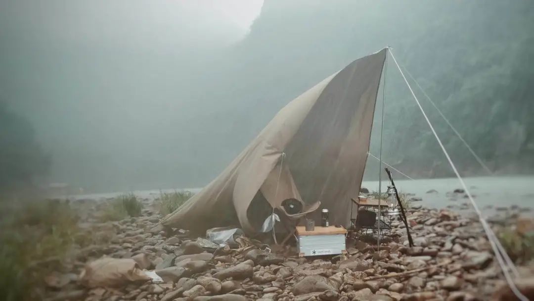 有一次,他一个人去杭州郊区的河滩野外solo,本来天气不错,但等他搭建好营地之后,突然狂风四起、大雨倾盆,根本来不及收拾,装备瞬间被大风吹得七零八落,天幕被撕裂了,河水也很快涨上来淹没了营地。