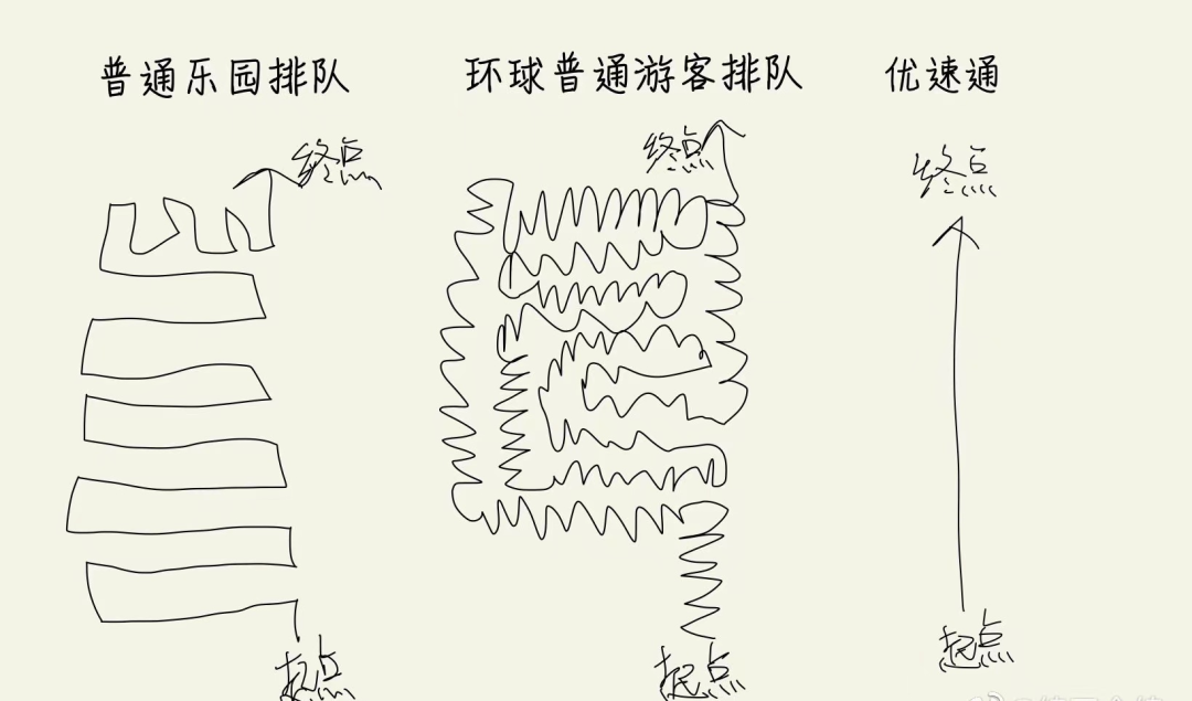 网友自制环球影城与普通乐园的排队对比图 图源:微博