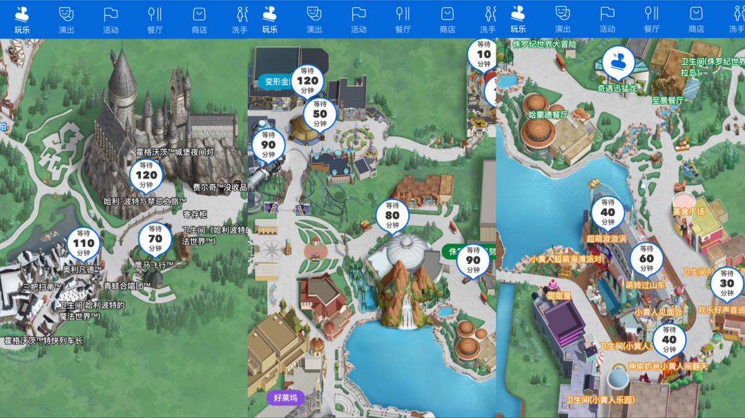 对于想要获得更高性价比体验的玩家,官方的建议是,通过北京环球度假区微信小程序上的实时排队时间,就近选择排队相对较少的项目游玩,灵活应变、错峰游览。
