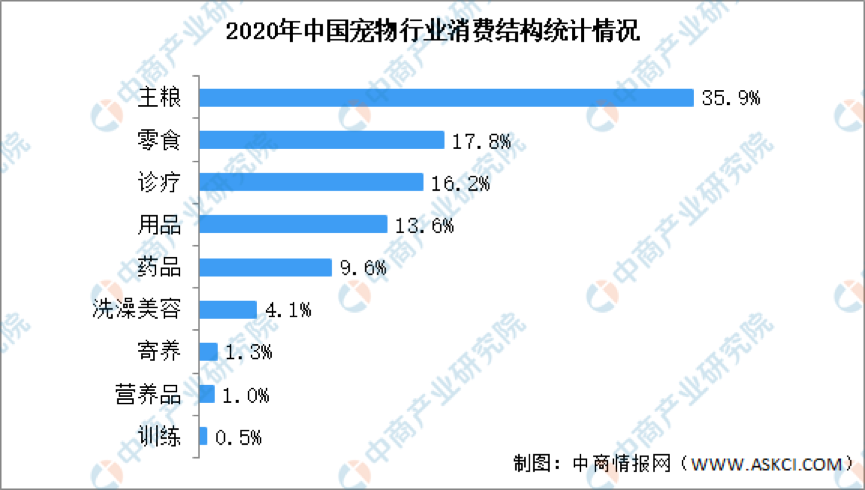 《2020年中国宠物消费市场报告》显示,2020年中国人均单只宠物的年消费金额为6653元,相比较2019年的5561元,同比增长19.6%。但从宠物消费结构来看,宠物食品消费、宠物诊疗、宠物用品三类的支出占比超过80%,宠物寄养服务消费占比不过1.3%。