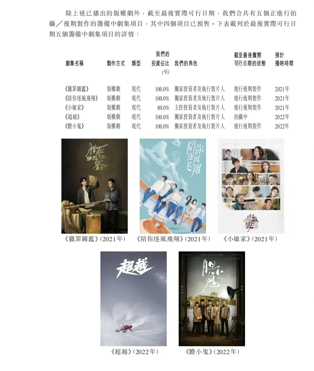 依据柠萌影业赴港上市招股书,目前已杀青的《犯罪图鉴》预计2021年在爱奇艺“迷雾剧场”播出,《胆小鬼》(原名《生吞》)预计2022年在优酷“悬疑剧场”播出。