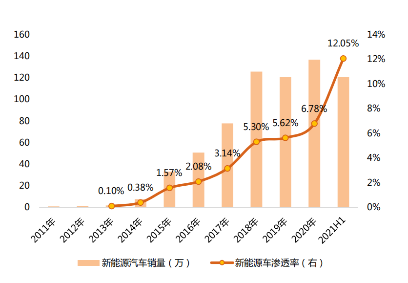 过去十年,中国新能源汽车从无到有,至今年上半年渗透率已经达到12.05%,且仍保持高速增长势头。从数据绝对值看,12%的渗透率依然极低,仍有数倍的增长空间,行业爆发将是宁德时代最主要的发展机遇。