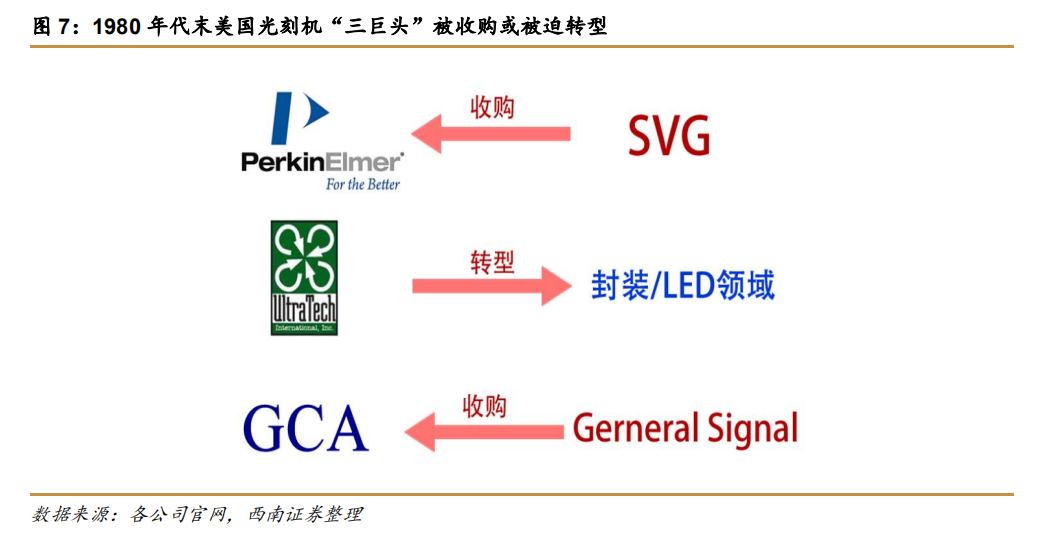 在日系厂商的冲击下,产能过剩、低价倾销成为80年代后期光刻机行业的常态。猛烈的碰撞中,美国光刻机三巨头GCA、Ultratech 和 P&E 纷纷败北,日本尼康取而代之成为行业龙头,而此时ASML刚处于初创阶段,仍没有机会证明自己。