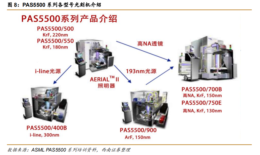 PAS 5500瞄准8 英寸市场,不仅在当时领先于时代,而且还是第一台具备可拆卸模块的光刻机。对于芯片厂而言,可拆卸的光刻机大幅降低维护成本,如果有零件损坏,那么只需要更换相应模块就可以完成维修,省时省力省钱。