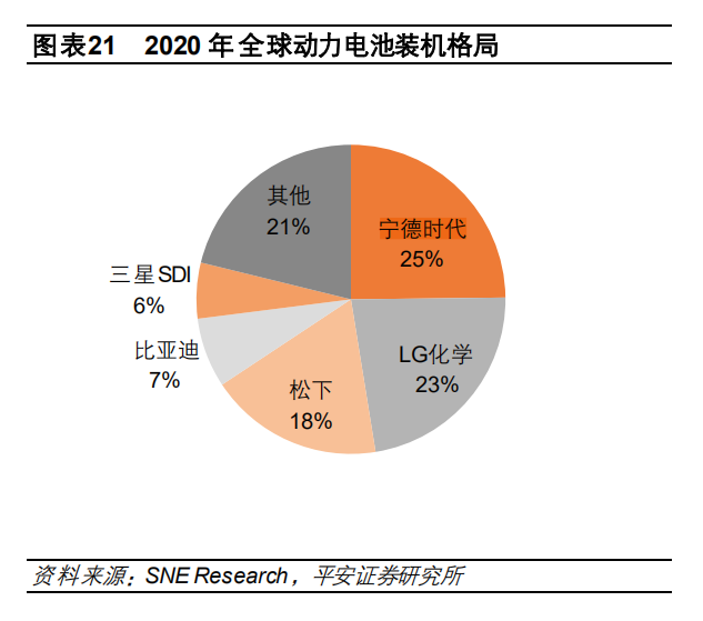 数据显示,2020年全球动力电池装机量中,宁德时代以25%的份额位居榜首,但LG化学、松下也分别以23%和18%的市场份额位列二三位,彼此之间的差距并不大。
