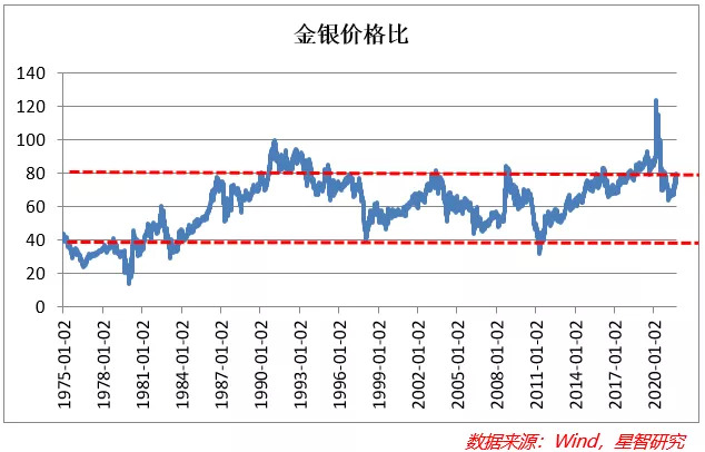 上周,国际白银价格跟随黄金波动,周涨幅为2.67%。但受益于有色金属的大幅上涨,白银走势好于黄金,当前金银价格比回落至76左右。