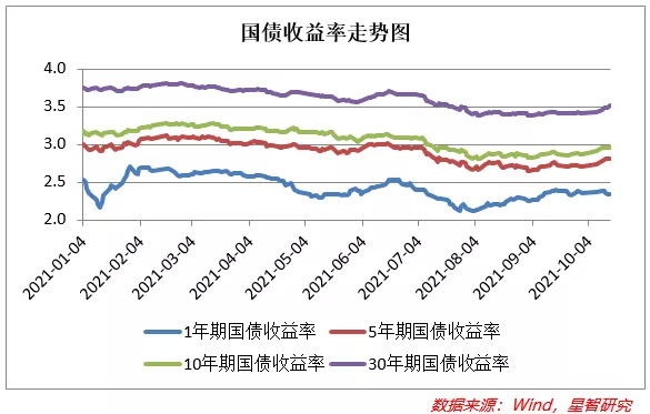 上周1年期国债收益率下行3.7BP至2.34%,5年期国债收益率上行7.3BP至2.82%,10年期国债收益率上行5.7BP至2.96%,30年期国债收益率上行8.8BP至3.52%,中长端利率继续走高。