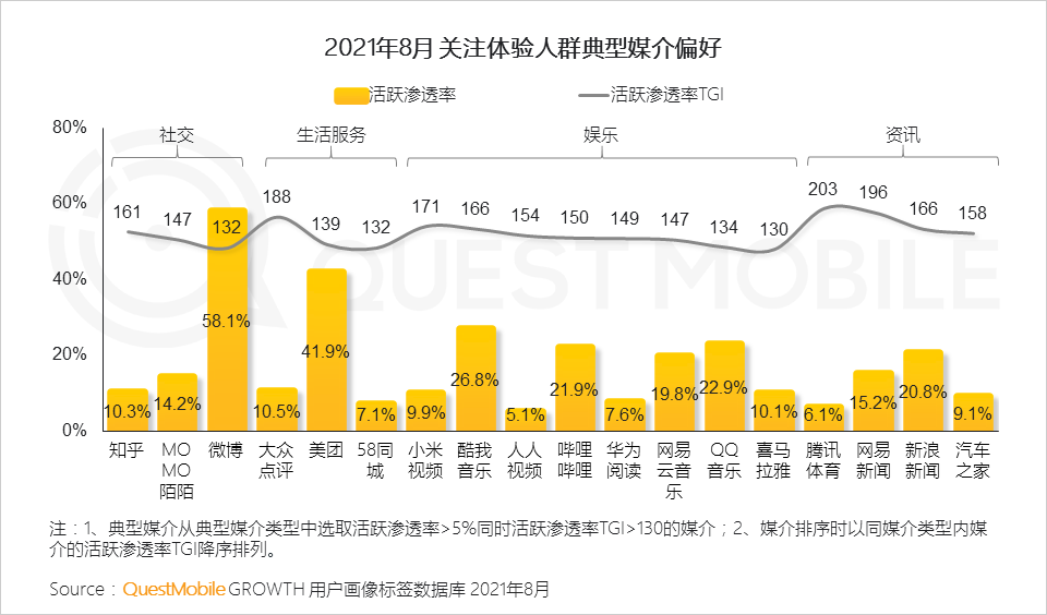 1、“关注体验”与“分享体验”是注重生活感受人群的典型行为特征