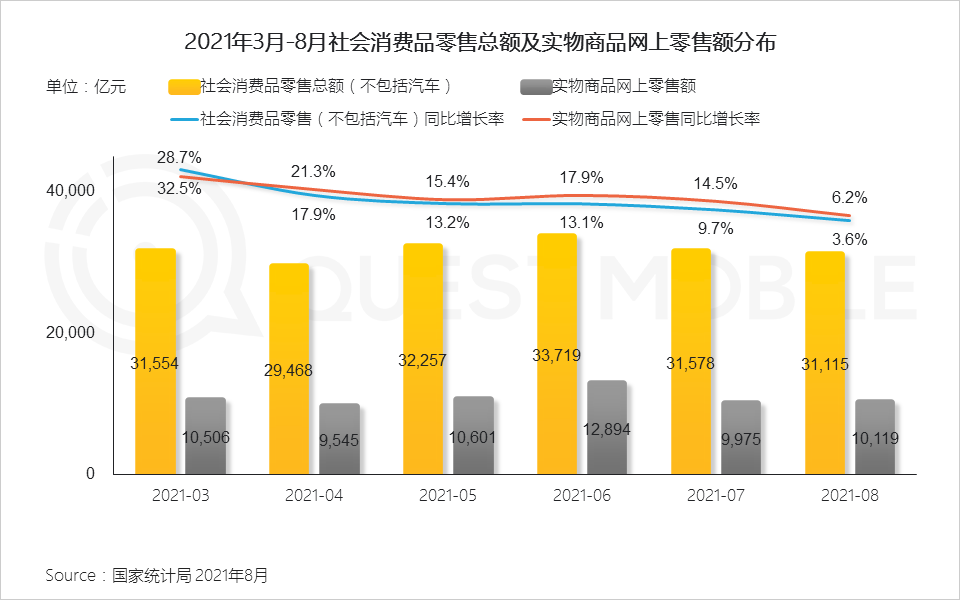 QuestMobile数据显示,2021年8月全网64.0%的用户消费关注品质,同时关注价格和关注体验的群体规模同比小幅增长。