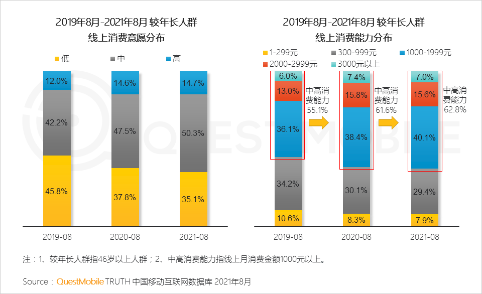 2.1 较年长人群线上消费意愿和消费能力不断提升,营销价值凸显