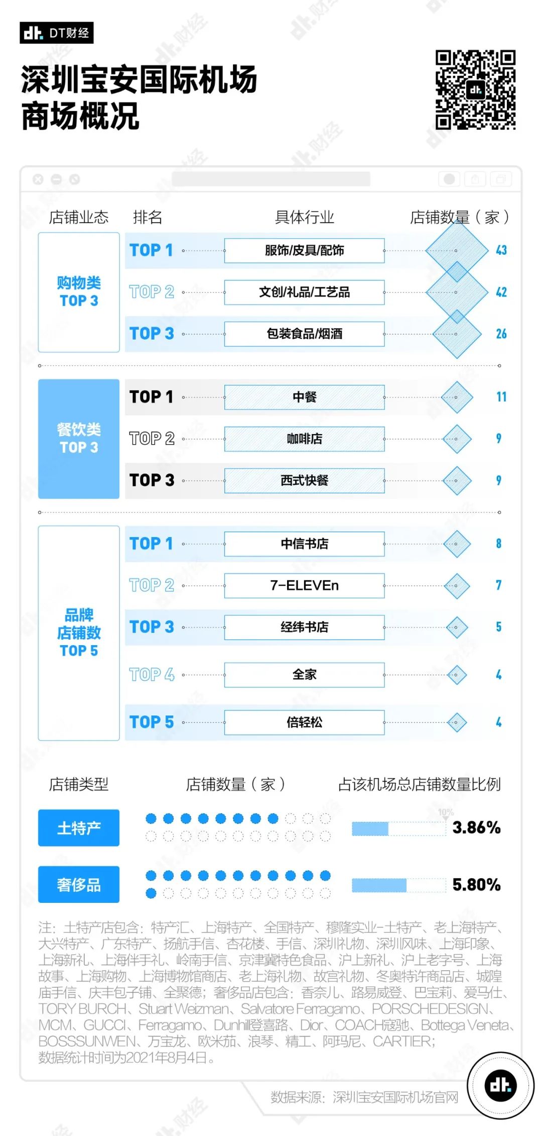 然而就在这么一个“忙碌”的深圳中,深圳宝安机场却是6座机场中最“文艺”的。因为深圳机场单店数量最多的品牌中,有2个书店品牌上榜。这2个书店品牌一共在深圳机场设置了13家门店。同时,深圳机场内文创/礼品/工艺品类商店数量达42家。