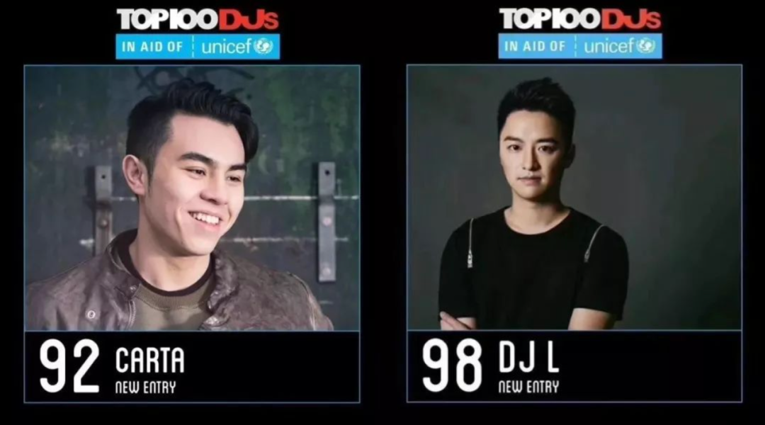 2017年,DJ Mag官网榜单中DJ Shogun的身后,便是生于香港的90后新生代DJ Carta(忻若言),当年的他获得92名,也是第二位上榜的中国人。同年,DJ L(周诚隆)也跻身榜单,位列98名,成为了第一个入选全球百大DJ的中国籍电子音乐人。