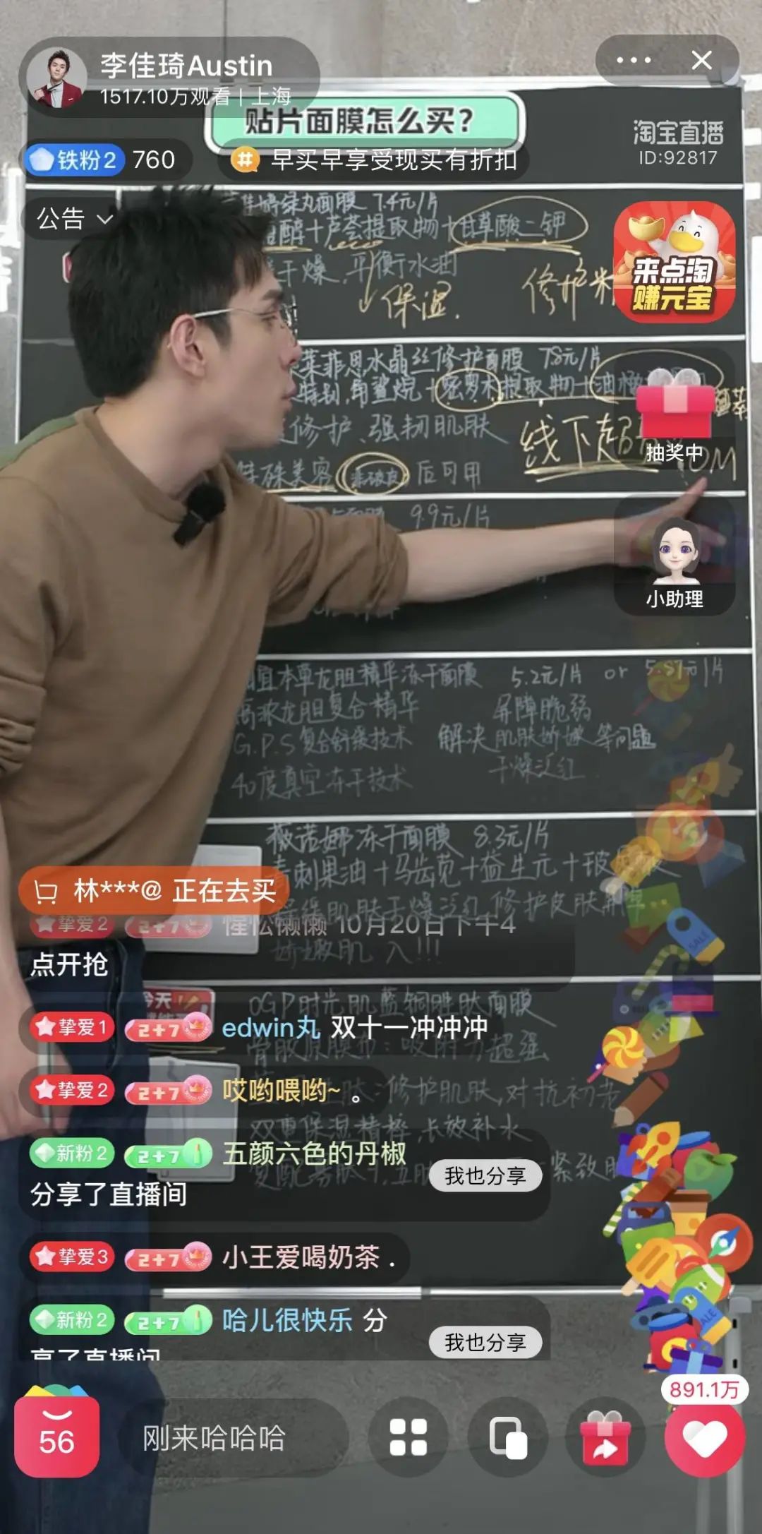 李佳琦在讲美妆护肤课 图源 / 李佳琦直播间