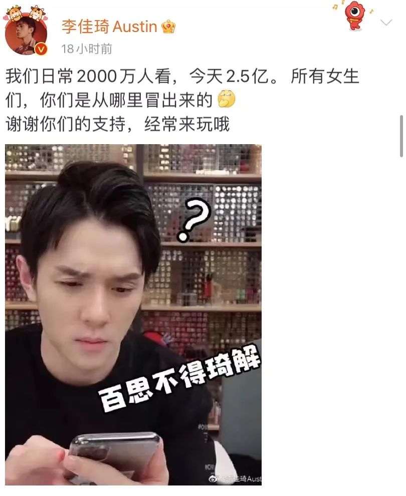 当晚,李佳琦直播间PV达到2.5亿,以至于李佳琦发博问,“我们日常2000万人看,今天2.5亿,所有女生们,你们是从哪里冒出来的?”