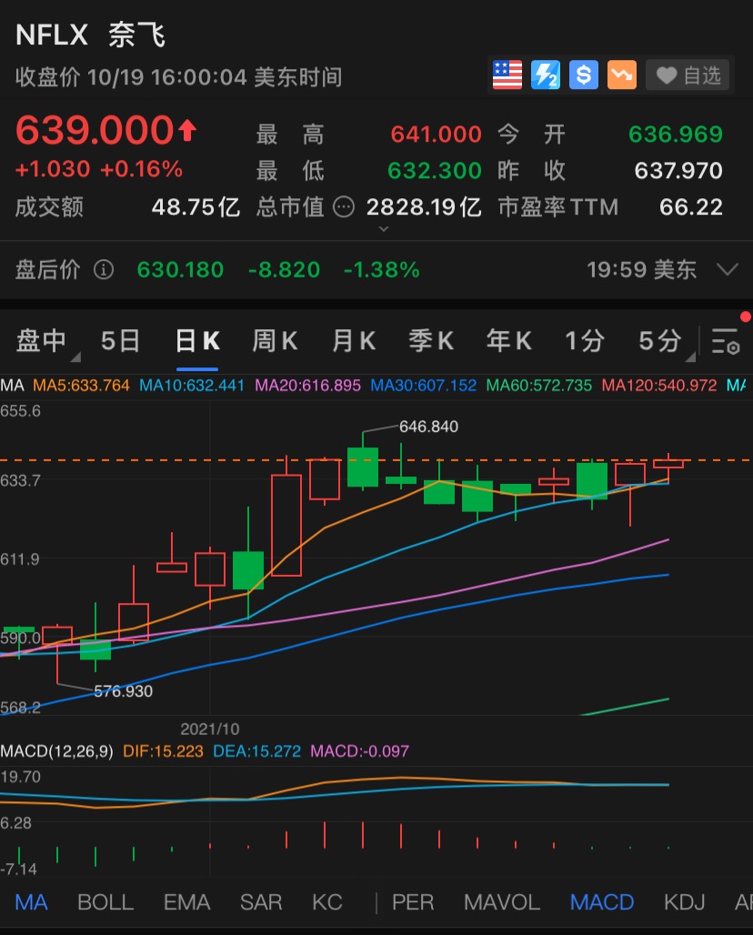 《鱿鱼游戏》的火爆也提前点燃了投资者的热情。9月17日,《鱿鱼游戏》播出之日奈飞收盘股价为589.35美元,截止10月19日三季度财报公布后,奈飞股价涨至639美元,涨幅超8%,接近历史最高峰点。在过去的一年里,奈飞的股票涨幅达29.9%,高于标准普尔500指数16.7%近一倍的总回报率。
