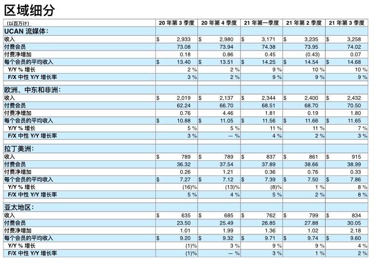 财报显示,奈飞上半年亚太地区付费用户达2788万人,较上年同期增长23.9%。三季度奈飞全球总营收达74亿美元,亚太地区营收仅为8.34亿美元,却成为了三季度增量客户和网络访问量提升的重要来源,原因是第三季度亚太地区付费用户实现了218万的净增,占奈飞该季度净增付费用户总量的一半。