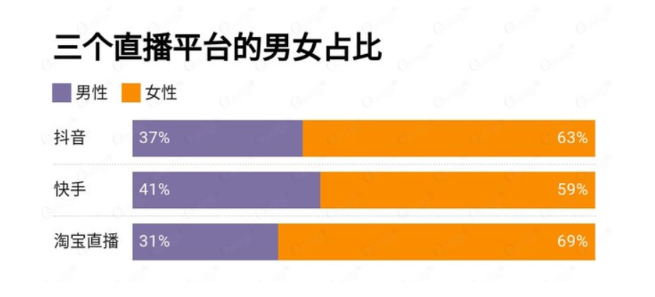 我们知道,相对于其它电商平台,淘宝的特点是大而全,汇集不同品牌不同价位的产品。据O'Ratings的报告显示,与抖音和快手的直播相比,淘宝直播中的女性占比最高为69%,结合淘宝丰富的商品品类,让具有不同消费力的女性用户能够挑选到适合自己的美容护肤产品。