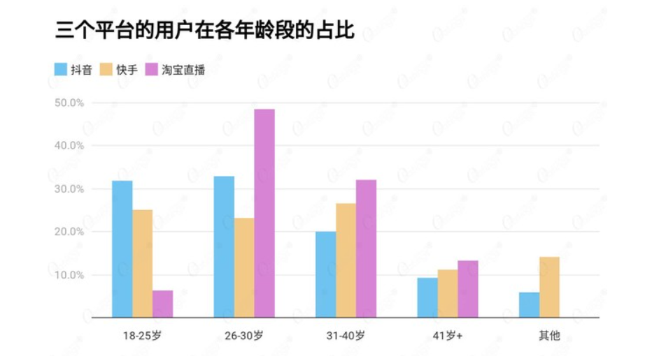 同样是来自O'Ratings的数据,淘宝直播除了在18-25岁的用户占比较低外,26-40岁的用户占比较高,是淘宝直播的“核心用户群”,总和占比为80.5%。该年龄段的用户多数已具有一定的财富积累,消费实力更强、消费的客单价也更高。