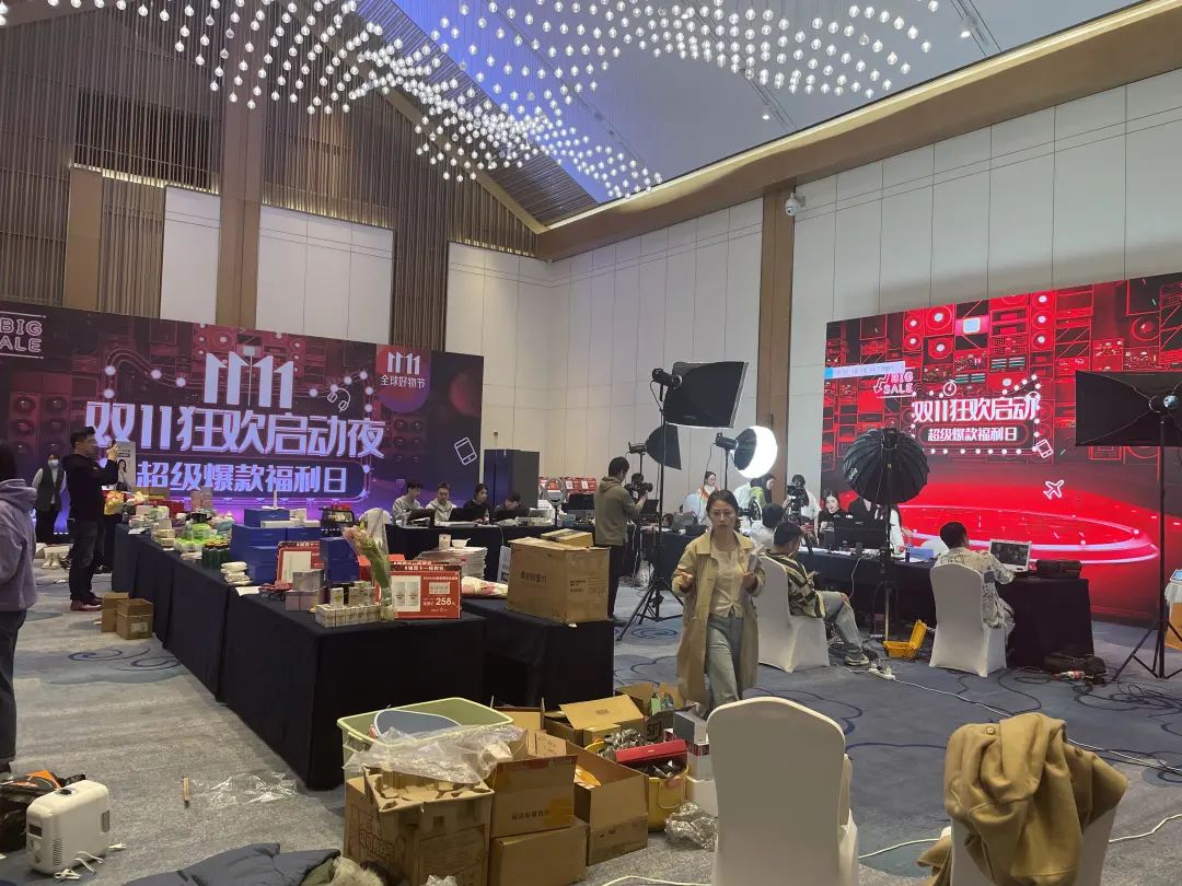 10月19日,双11预售开启的前一天,一辆大巴把陈洁的几十名一线员工,拉到杭州湘湖的一家五星酒店。这回她下血本,包下了一整个宴会厅,准备在这里迎接双11开门红,员工吃住都在这儿,既像是要打仗,又像是要过年,气氛热闹得不行。