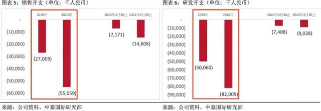 这是因为,在营收增长的同时,微泰医疗的研发、销售及行政等开支也大幅增加。2019年、2020年,其研发开支分别为5006万元、8201万元;销售及分销开支分别为2700万元、5506万元;行政开支分别为3362万元、4576万元。
