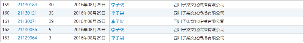 此时,刘同明能在此时就找到了李子柒。国家知识产权局商标局网站显示,早在2016年8月29日,子柒文化就在多个国际分类领域密集注册了李子柒商标。不过根据商标流程,该商标注册人曾在2020年申请变更注册人,而子柒文化公司成立时间则是在2017年,据此判断,杭州微念或早在2016年8月时,就已经开始了与李子柒的合作。