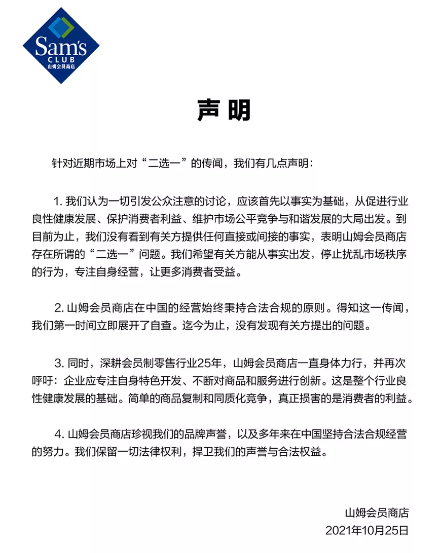 正当用户为这一「竞争对手」的身份而疑惑时,同一时间有业内人士透露,竞争对手或为零售巨头沃尔玛旗下的高端会员制商店——山姆。
