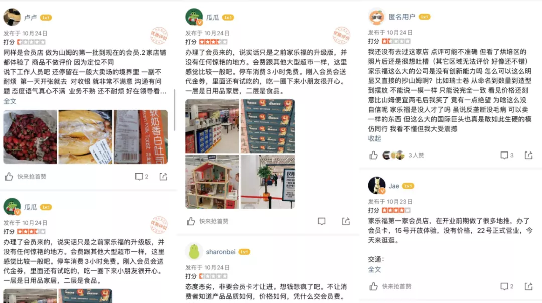 比如,在大众点评上,就有人这样评价新开业的家乐福会员店: