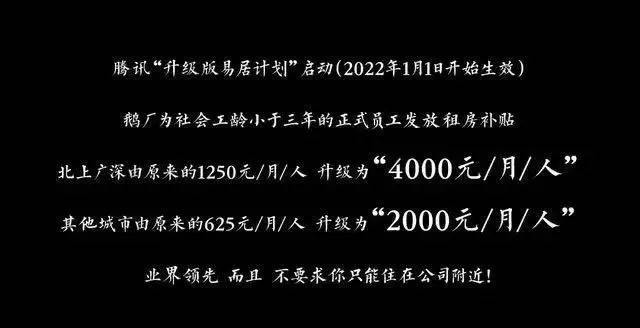 先是互联网大厂薪资福利纷纷曝光。以腾讯为例,相比去年,月薪整体上调2000元,租房补贴从每月1200元上涨至每月4000元,入职即有3万元签字费,分两年发放6-20万元股票。