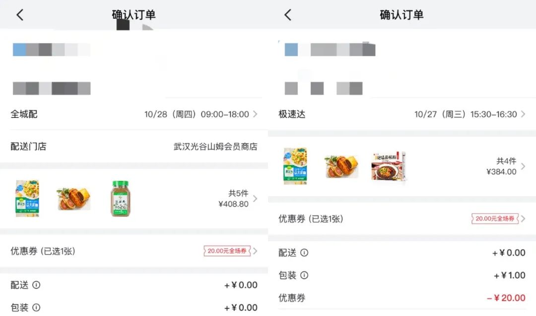 不过,今年以来,山姆也在试图调整自己并不快速的配送体验,开始推广一小时“极速达”服务,在前置仓中备好线下门店复购率较高的日常商品和食品,不过,所售商品种类并没有线下门店丰富。